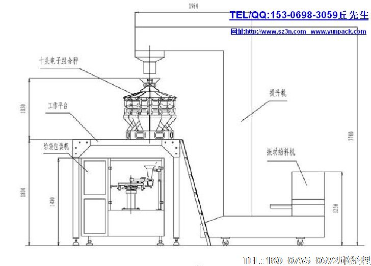一、概述 该套设备主要适用于适用于糖果、坚果、葡萄干、花生、瓜子、果仁、薯片、巧克力、饼干等大颗粒及不规则块状物的自动计量包装。通过提升机把小袋物料提升至自动计包装置中后,电脑自动组合所设定的包数, 把组合好后的数量输送至给袋式包装机中,通过给袋式包装机自动装袋、封口、输出成品并检测。整套设备自动化程度高,为厂家节约人工,提高生产效率。